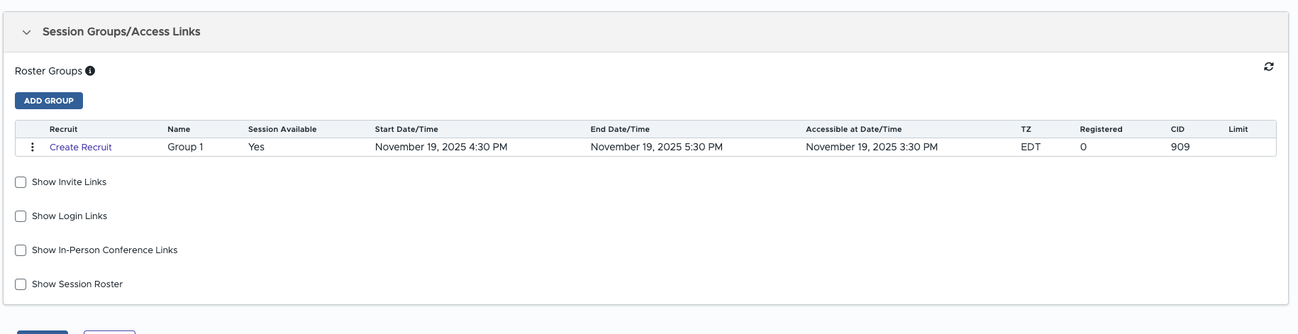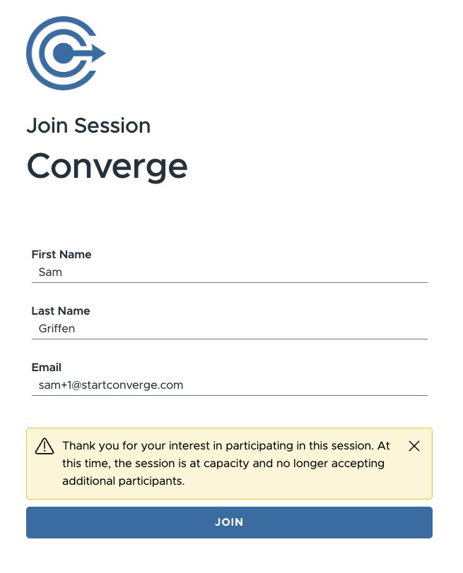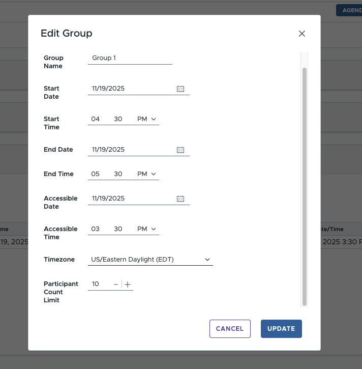 To set a participant limit for a given session group go to edit session -> session groups and click edit group and update the form field called "Participant Count Limit"