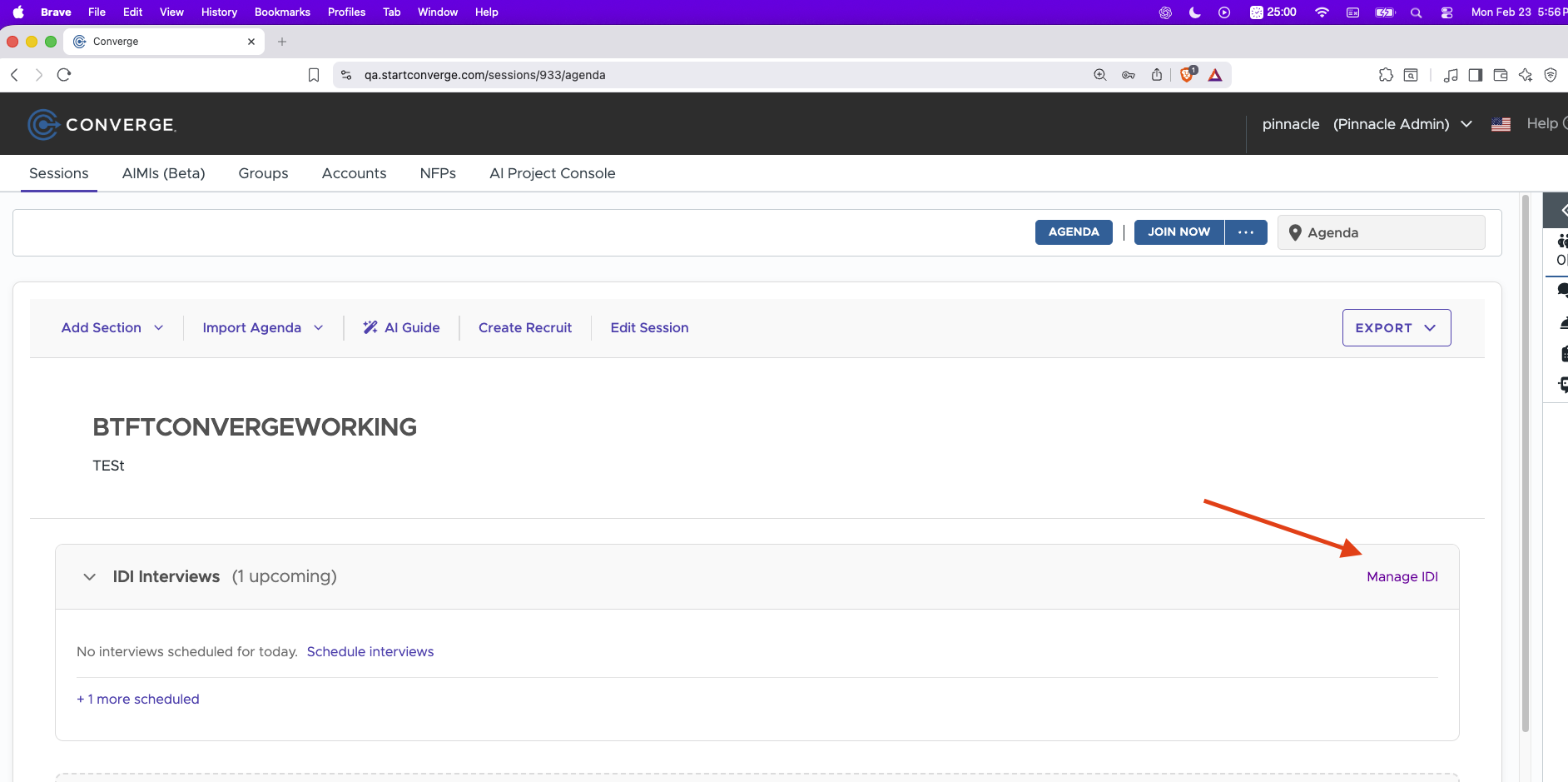 After running the zoom meeting, head back to the Converge side. Click "Manage IDI"